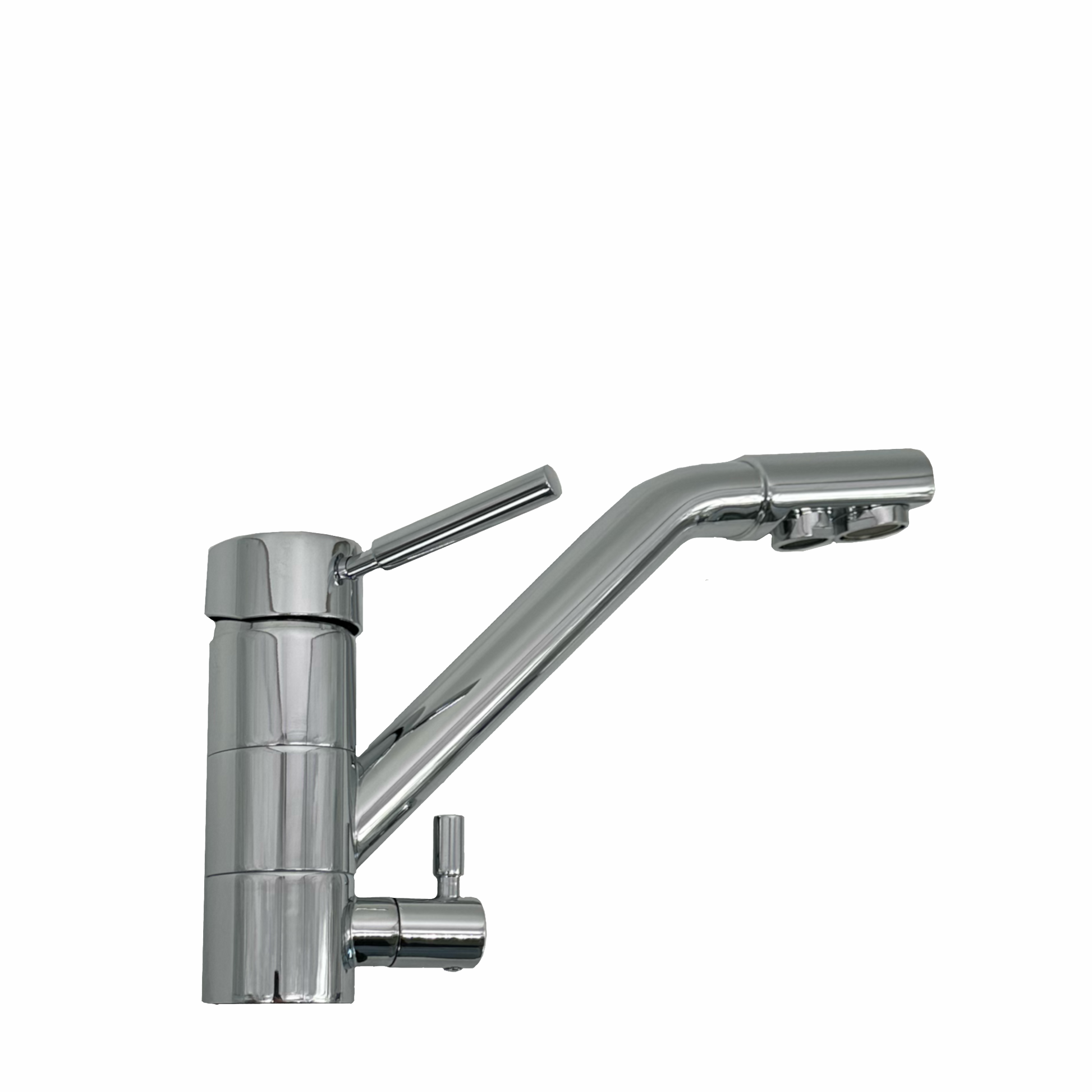 3-Wege-Wasserhahn Chrom für Wasserfilter Umkehrosmose-Systeme: ein Hahn für warmes/kaltes Leitungswasser und gefiltertes Wasser.